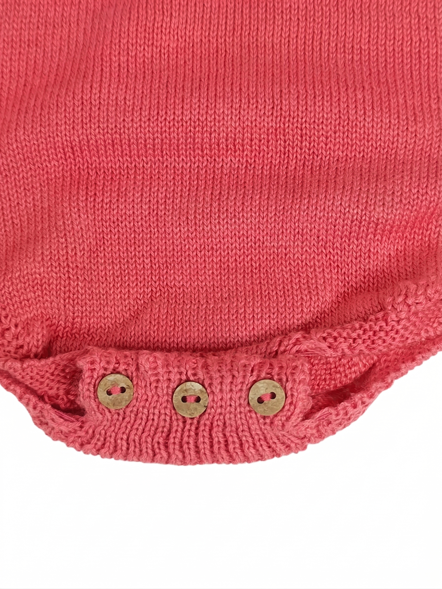 Viste a tu bebé con la delicadeza y el estilo clásico de nuestro pelele de punto artesanal. Esta prenda ha sido diseñada pensando en la máxima comodidad, combinando un tejido de hilo suave con detalles de alta calidad que marcan la diferencia.